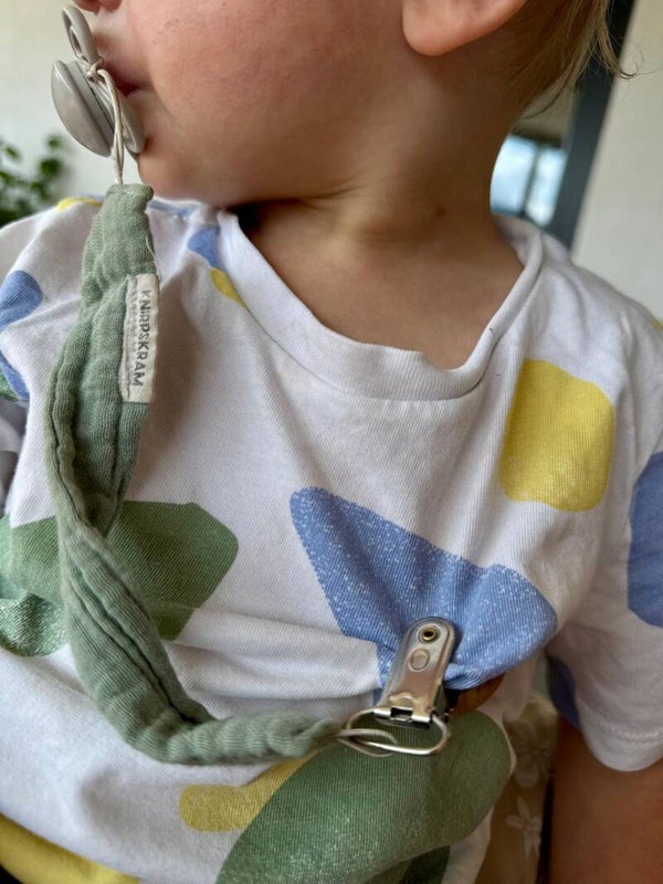 - Aufgrund des Holzclips kann die Schnullerkette nicht in der Waschmaschine gewaschen werden.