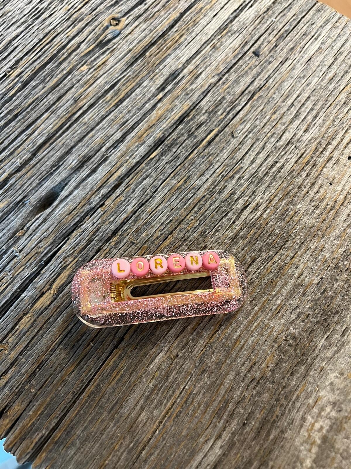 Schöne von hand gegossene Haarclips in Wunschfarbe mit einem Namen personalisiert