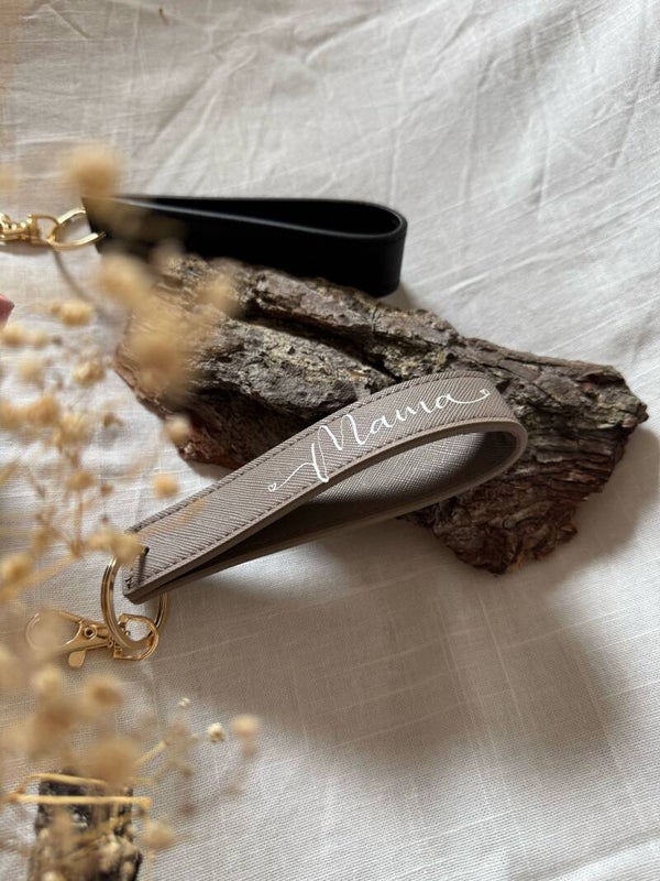 Ein personalisierter Schlüsselanhänger aus Kunstleder mit goldenem Ring nach deinen Wünschen personalisiert. Ein schönes kleines Geschenk oder Mitbringsel.
