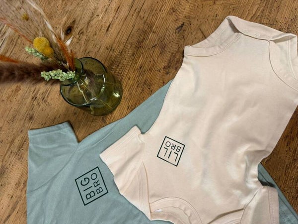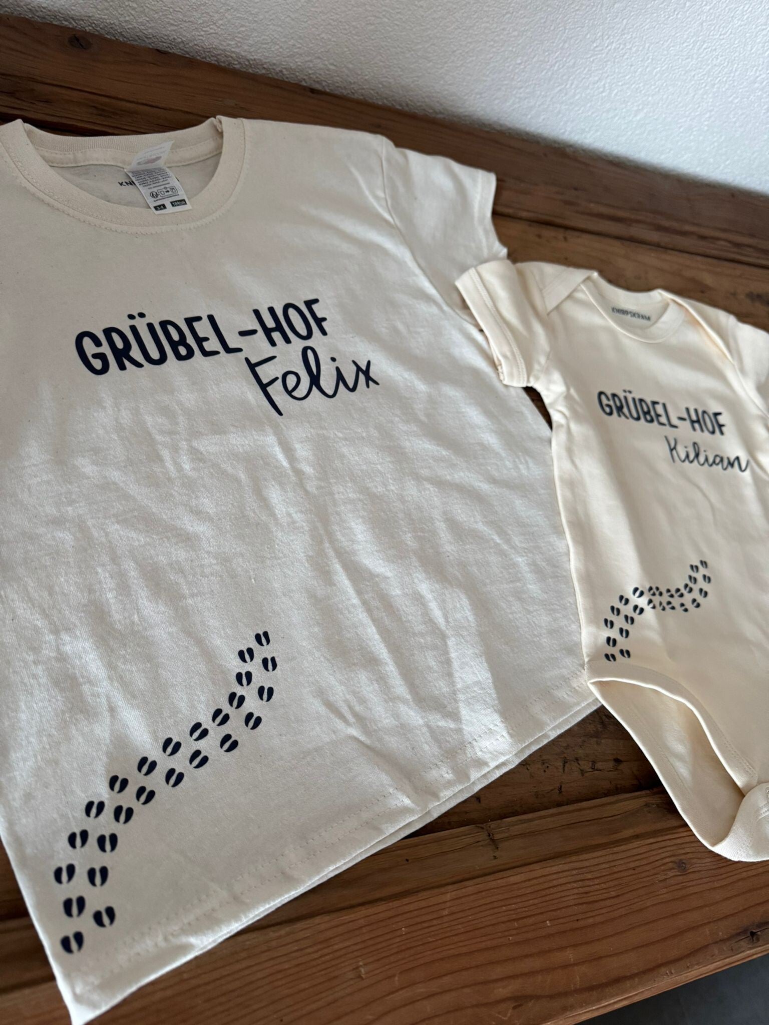 Ein tolles Set aus Kindershirt und Babybody welches ganz nach deinen Wünschen gestaltet wird, ideal als Geschenk zur Geburt.