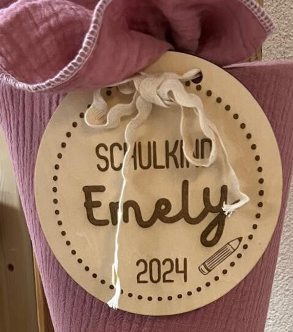 Kann nach Einschulung in ein Kissen umgenäht und weiterverwendet werden.