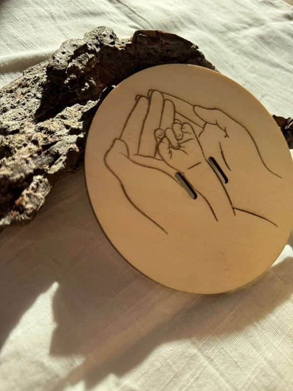 Eine schöne Aufbewahrungsmöglichkeit für das Krankenhausarmband - ideal als Geschenk zur Geburt. Es dient nicht nur als Erinnerungsstück, sondern auch als schönes Dekostück für's Kinderzimmer.